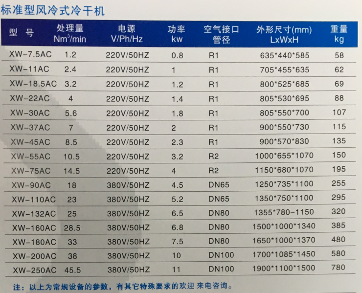 風冷式(shì)技術參數